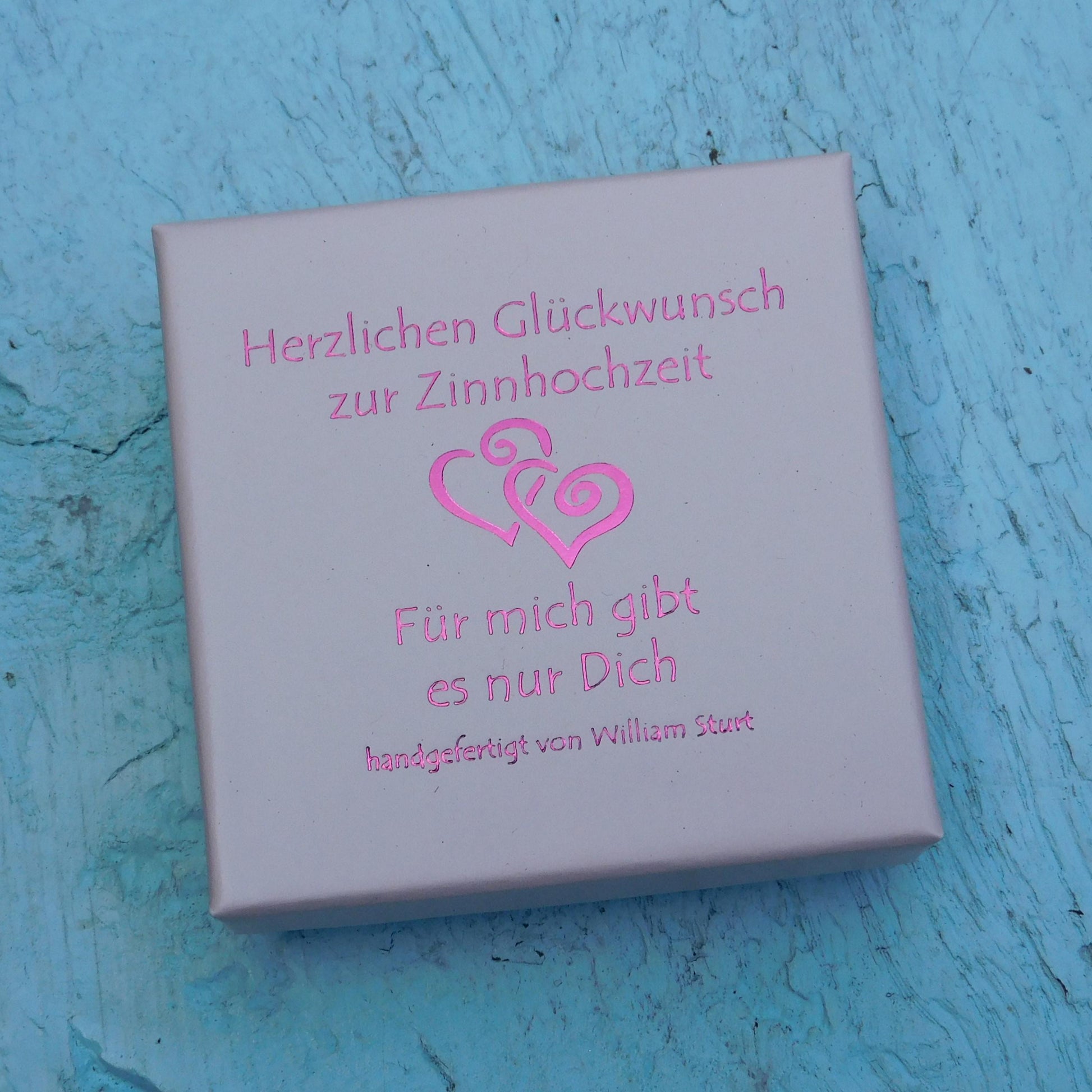 Tin anniversary keyring, handmade in Fine Pewter with Personalisable date.